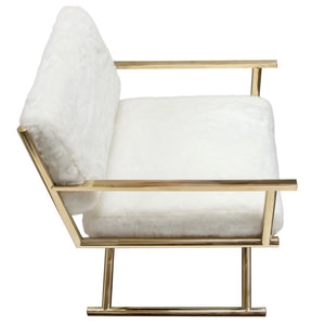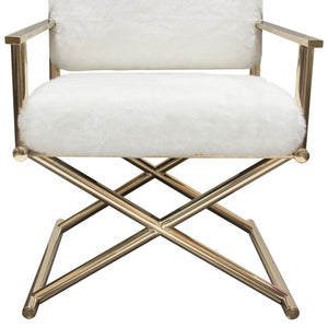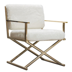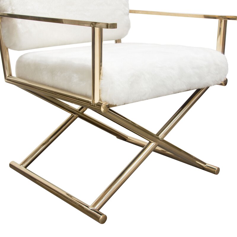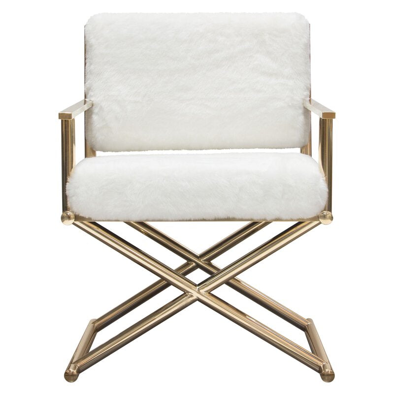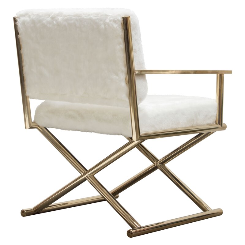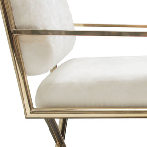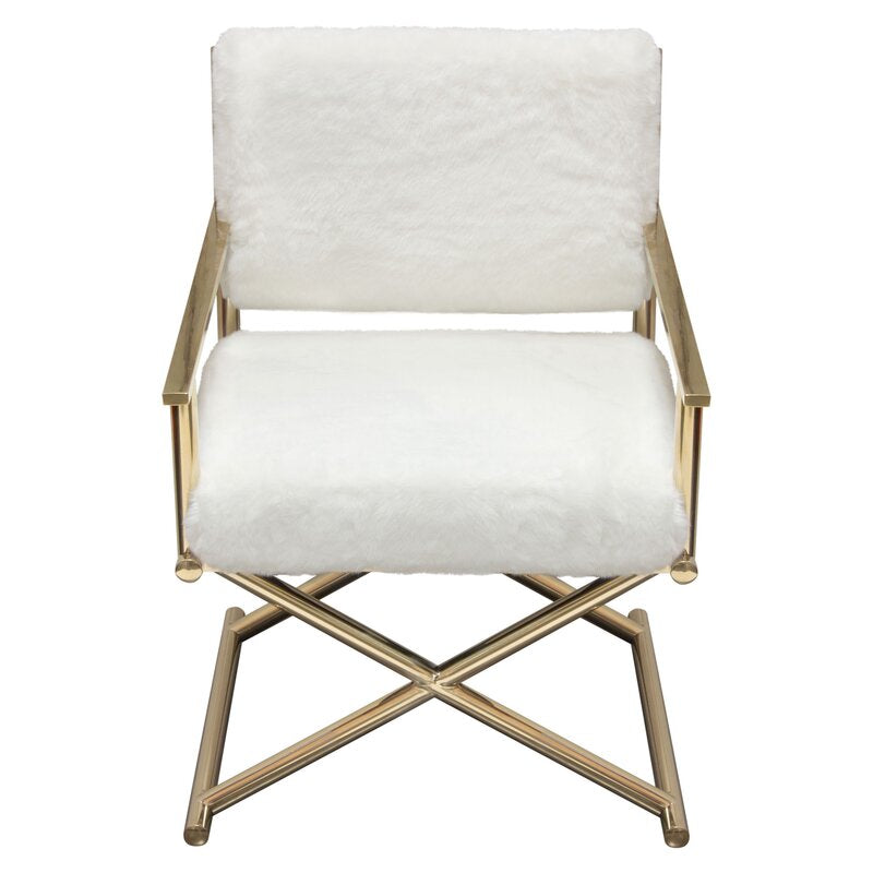 This Diwer Armchair is a classy, yet sassy addition to your home's decor. With its White faux fir seat and back on the gold-finished metal frame, the look results in chic cool. Great accent chair for any area of the home.