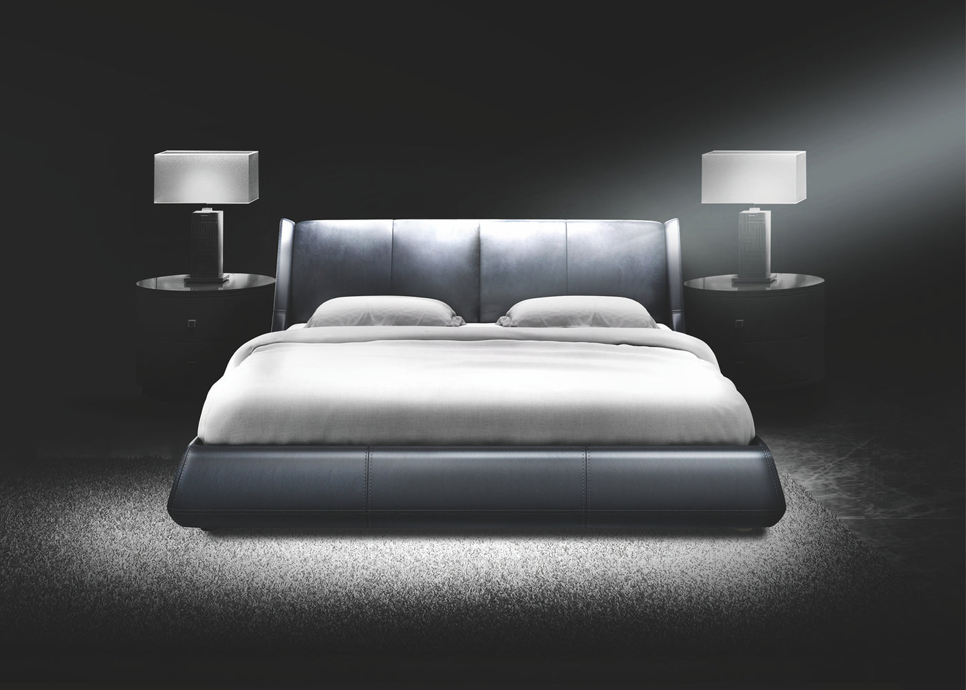 Wing Dark Grey Leather Bed