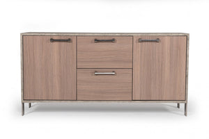 Butoo Modern Brown Oak & Faux Concrete Office File Cabinet