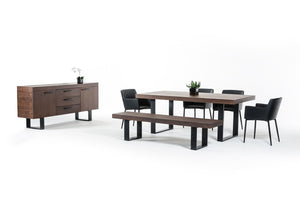 This modern dining table is a unique and interesting addition to your dining space. With the smooth top, messes are easily cleanable and gives a hint of sophistication to your dining room. The smaller table invites everyone to join in and have an intimate meal together. With the walnut finish, this dining table can easily be dressed up or down.