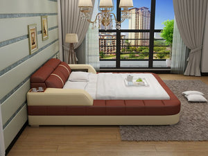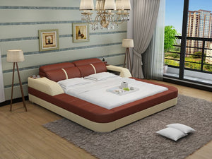 This Denya Modern Leather Bed with Storage is hand made with minimalist taste in mind. The entire frame is composed of Italian leather and a nice, expansive recessed area on the side offers a storage area with lighting. The generous storage space is perfect for midnight bookworms or magazine collectors. Top headrests are adjustable for maximum comfort. This leather bed is available in Italian leather and bonded leather. Choose your preferred color leather from a selection of 10 distinct colors. The beauty of a minimalist bed is you can dress up your space with decorations or wallpapers without the bed contrasting intensely. Available in queen, king, or Californian king to provide resting space in your sanctuary.
