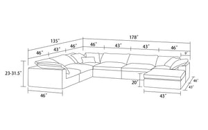 Indulge in the ultimate relaxation experience with this oversized modern modular sectional that takes comfort to a new level. Sink into the luxurious feather-down cushions that effortlessly conform to your body's contours, enveloping you in an embrace of softness. This modular sectional offers unrivaled versatility, allowing you to customize it according to your specific preference and mood. With the ability to rearrange the individual pieces, you can configure it to suit any occasion or setting, making it the perfect centerpiece for your living space. Enjoy endless possibilities with this remarkable piece of furniture.