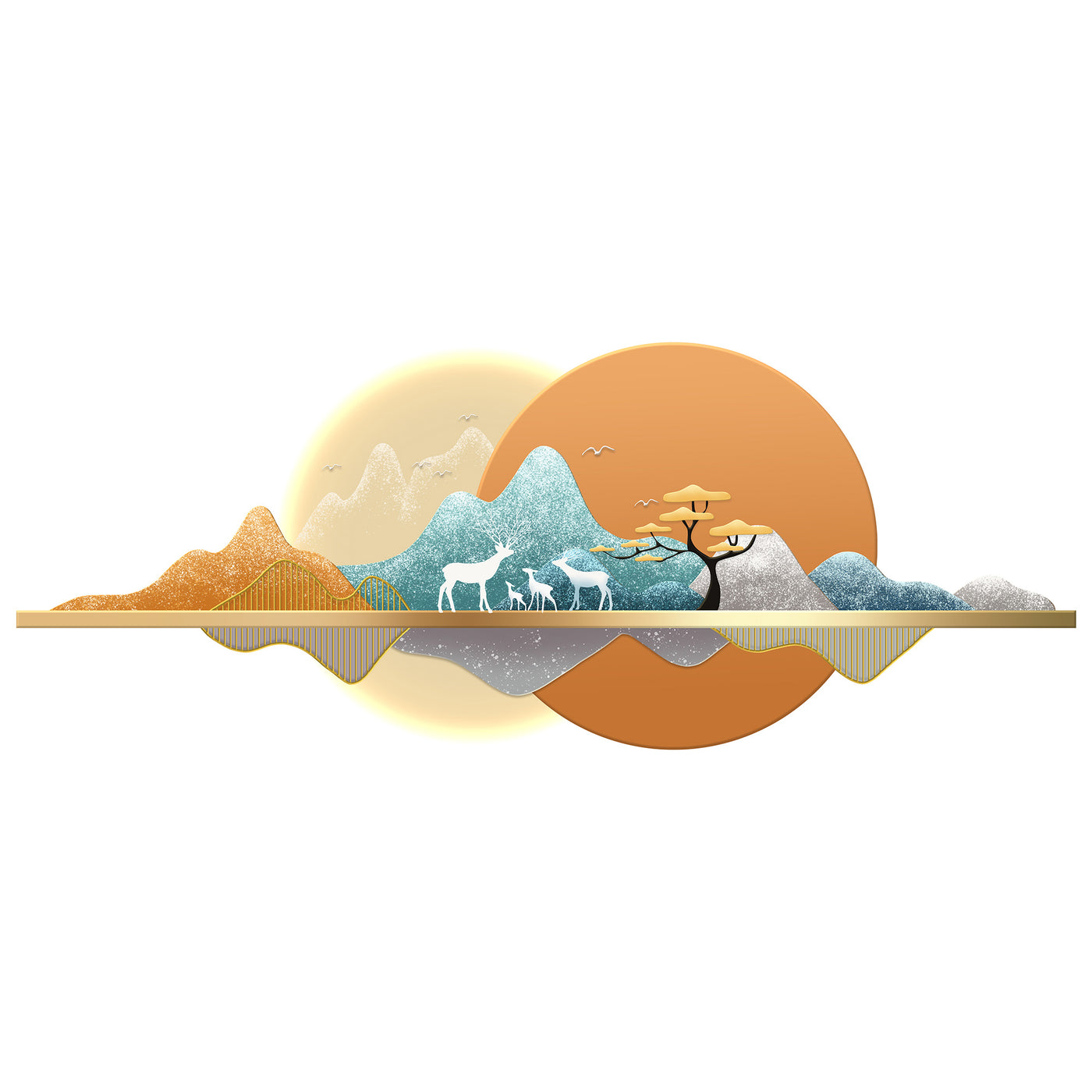 Futuristic Wall Art Elk Sunset Landscape II