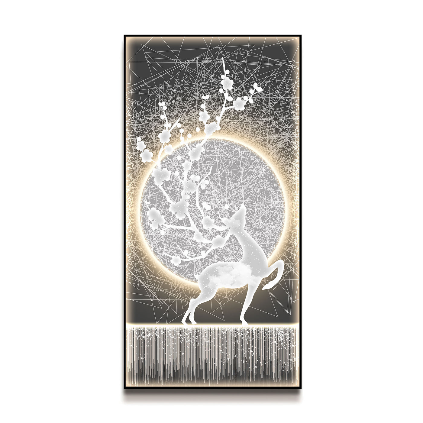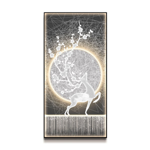 Introducing the Futuristic Wall Art Moonlight Dancing Deer I - a stunning piece of home decor that's sure to become a focal point in any room. The centerpiece of this wall art is a beautifully designed deer, gracefully dancing under the moonlight with its antlers adorned with blooming plums. The intricate details and lifelike appearance bring a touch of nature's beauty into your home. The warm light emitted by this wall art creates a calming and relaxing atmosphere, making it the perfect addition to any bedroom, living room or office. With adjustable lighting modes, you can choose the color that best suits your mood and atmosphere. The moonlight dancing deer wall art is a beautiful and functional piece that adds a touch of magic to your home.