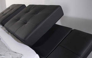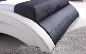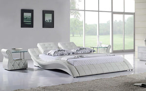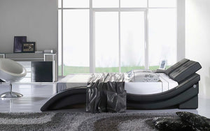 This hand-made ultra-modern bed has both discreet elegance and fine craftsmanship. The special wave-like design platform with a low profile makes it trendy and modern-looking. The low foot end gives a spacious look to your room. The curved headboard will make you more comfortable and relax while reading or watching TV. This bed is available in Italian leather and bonded leather. Also, a wide variety of colors and sizes can be chosen. You can also customize it based on your preferences!