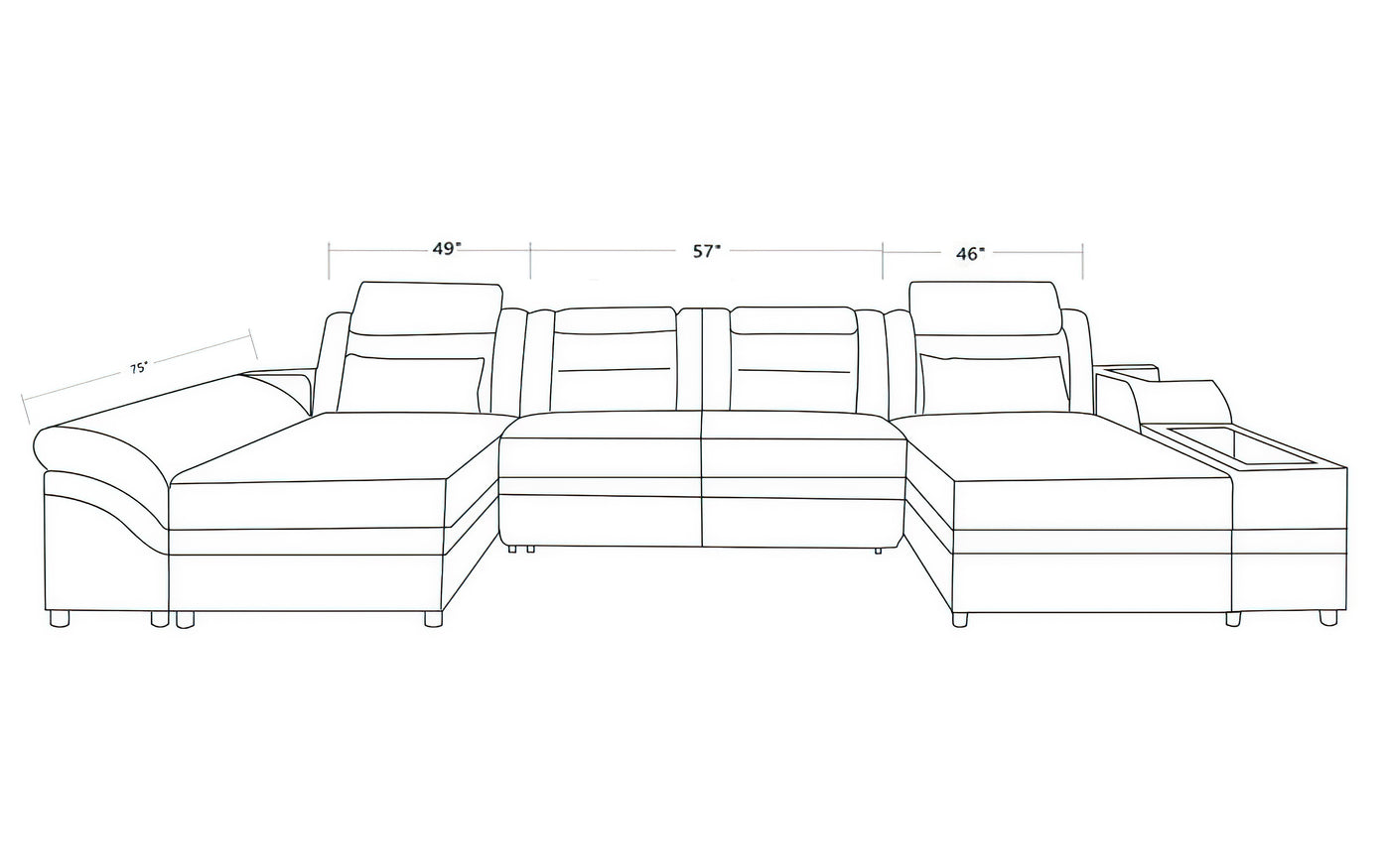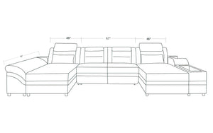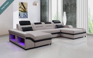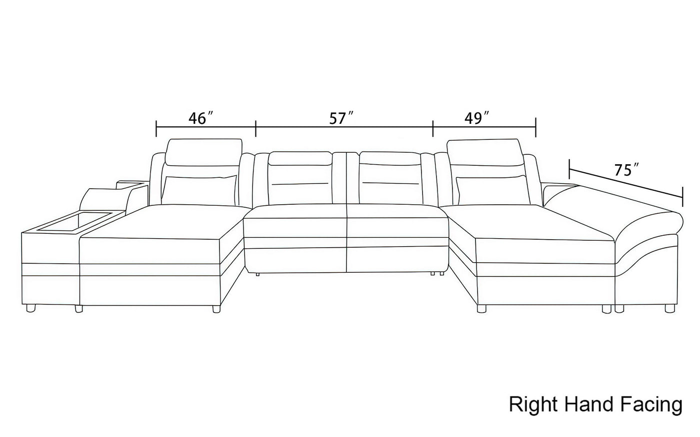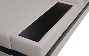 This venus Leather Sectional is designed with chaise on both ends. The armrests are wide and have storage beneath, perfect for books or magazines. The side of this leather sectional are illuminated by a LED light. It can be optionally upgraded to multi-color lights that can be controlled by a wireless remote. A USB Port is available on one of the arm rests. Contrasting adjustable headrests add symmetry to the couch. Choose your preferred color leather from a selection of 10 distinct colors, which is available in Italian leather and bonded leather. This modern couch is a stylish and contemporary addition to your living space. The unique sleek design sectional quickly catches the eye of visitors. To complete the look of your living space we recommend adding the armless chair and coffee table. Cup holders and USB ports are recommended for larger families to optimize maximum enjoyment. An additional bed function makes a great movie night with the family or space for unexpected guests. With the generous size of this sectional, family and friends will gladly socialize in comfort.