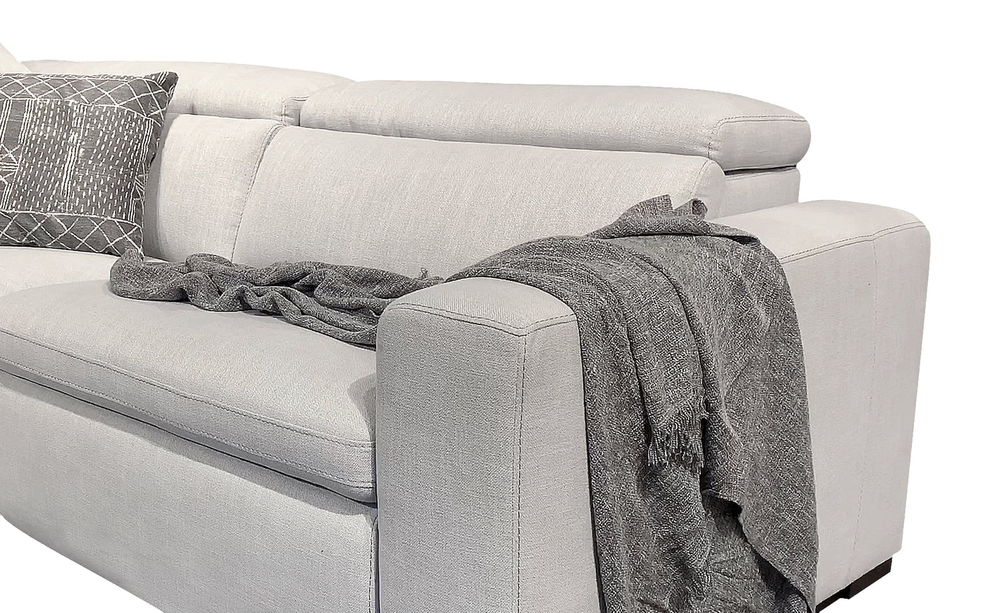 The Janet Modern Fabric Sectional with Recliner is the epitome of comfort and style. Featuring a power recliner with an adjustable headrest and footrest, this sectional allows you to effortlessly find your perfect lounging position. The built-in USB port ensures that your electronic devices are always charged and within reach. The sectional is upholstered in a luxurious combination of leather or fabric, adding to its chic and modern aesthetic. Whether you're relaxing with family or entertaining guests, the Janet sectional is the perfect addition to any living space.