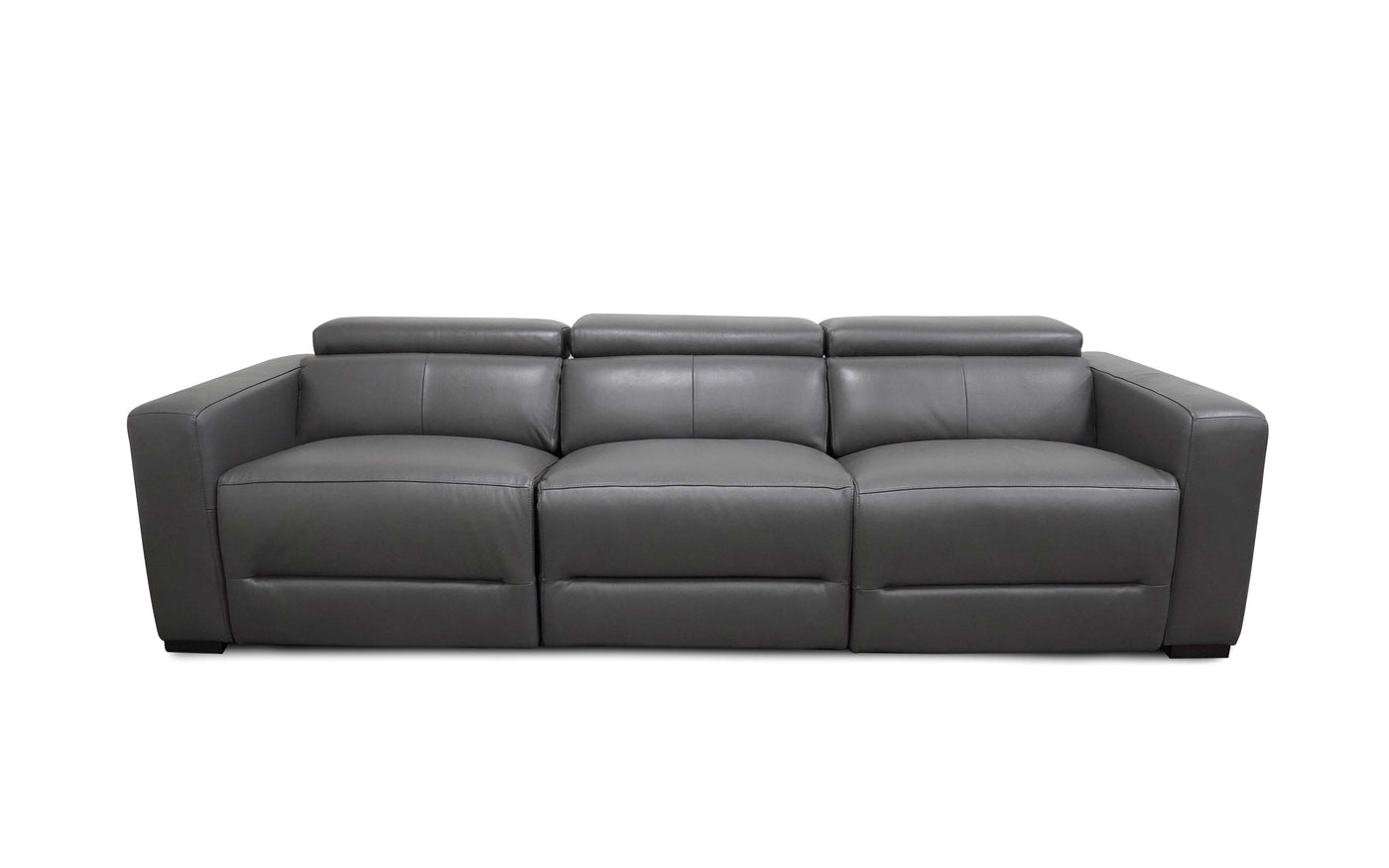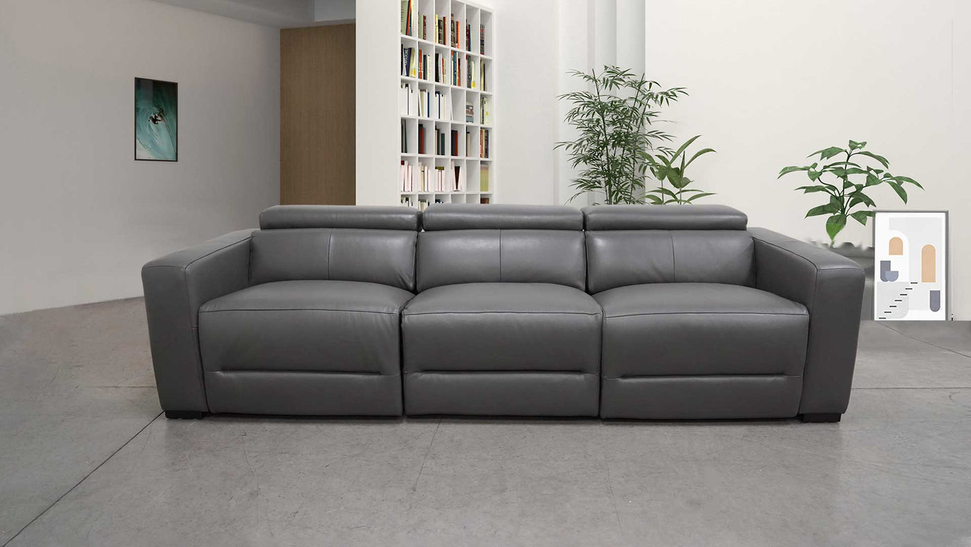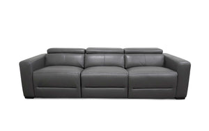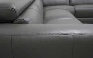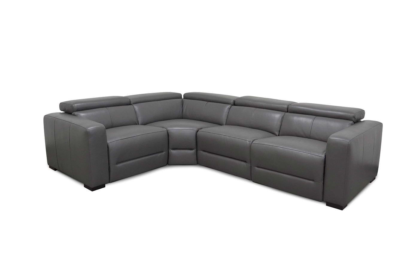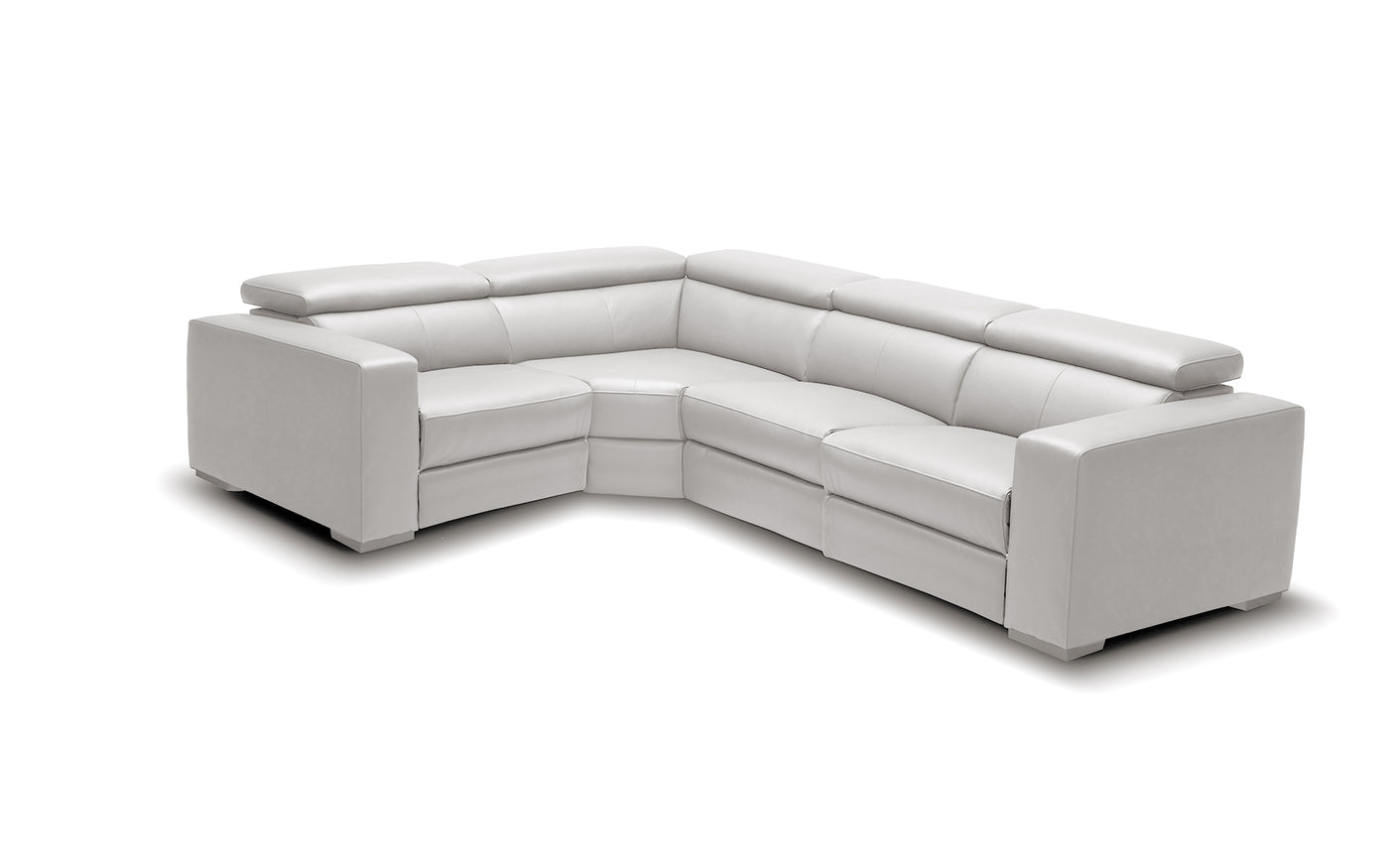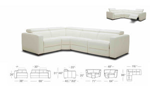 Mirage Reclining Sectional Sofa With Adjustable Headrest is made of top-grain Italian leather with a modern style. It includes three reclining chairs and a corner. The feet are made of solid wood so the sectional is durable and stable. It has five removable headrests, and the backrest is very user-friendly. This sofa is ideal for large gatherings and movie nights. Perfect for a contemporary home and lovers of comfortable lounging.
