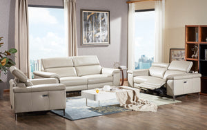 The Kony Modern Leather Sofa Set is made of top grain Italian leather with a modern style. It includes all reclining chair, loveseat and sofa. The feet are made of metal so the sofa is durable and stable. It has multiple adjustable headrests, and the backrest is very user-friendly. This sofa is ideal for large gatherings and movie nights. Perfect for a contemporary home and lovers of comfortable lounging.