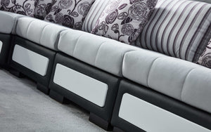 This smart sofa is absolutely beautiful, so elegant and sophisticated. It makes your space look very classy very well-made love the nice large size and to top it off the matching coffee table sets it off very nicely!!