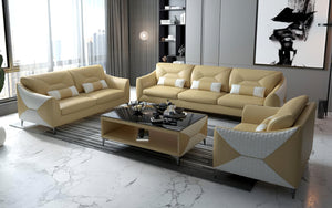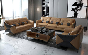Add a touch of sophistication to your living room with the Bysic Leather Sofa Set. This sleek and stylish set includes a sofa, loveseat, and chair, all upholstered in top-grain leather for superior comfort and durability. With its clean lines and modern design, the Bysic Leather Sofa Set will effortlessly elevate the aesthetic of any space. Available in a range of colors to suit your decor, this set is the perfect choice for those who want to enjoy both style and comfort in their home furnishings.