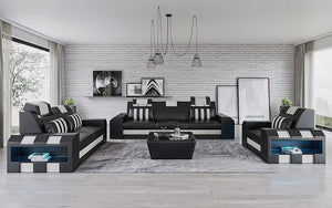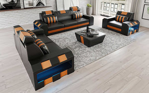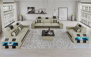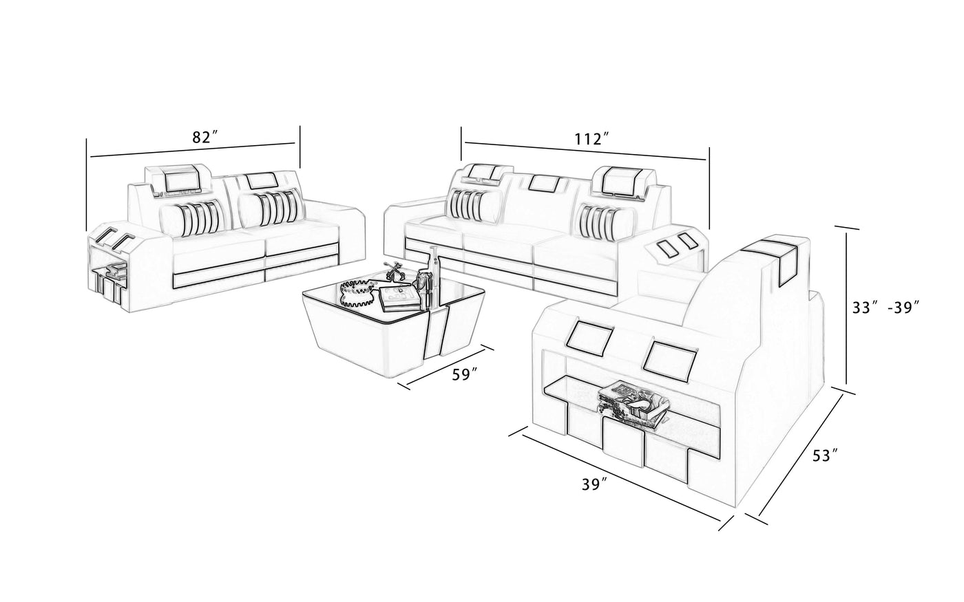 This smart sofa is absolutely beautiful, so elegant and sophisticated. It makes your space look very classy very well-made love the nice large size and to top it off the matching coffee table sets it off very nicely!!