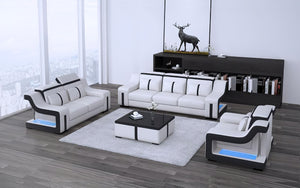 Lisa Leather Sofa Set with LED Light