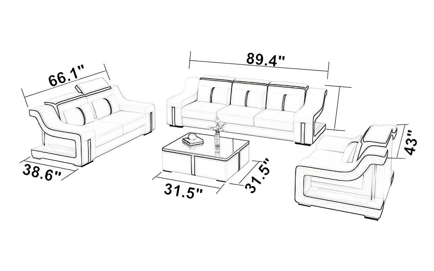 This smart sofa is absolutely beautiful, so elegant and sophisticated. It makes your space look very classy very well-made love the nice large size and to top it off the matching coffee table sets it off very nicely!!
