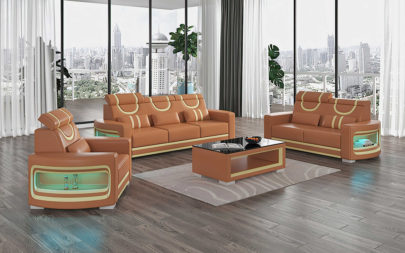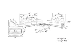 This smart sofa is absolutely beautiful, so elegant and sophisticated. It makes your space look very classy very well-made love the nice large size and to top it off the matching coffee table sets it off very nicely!!