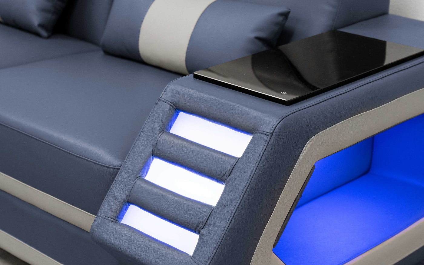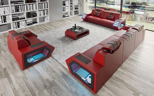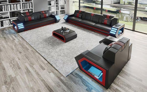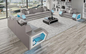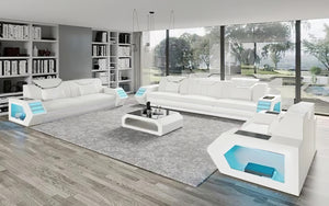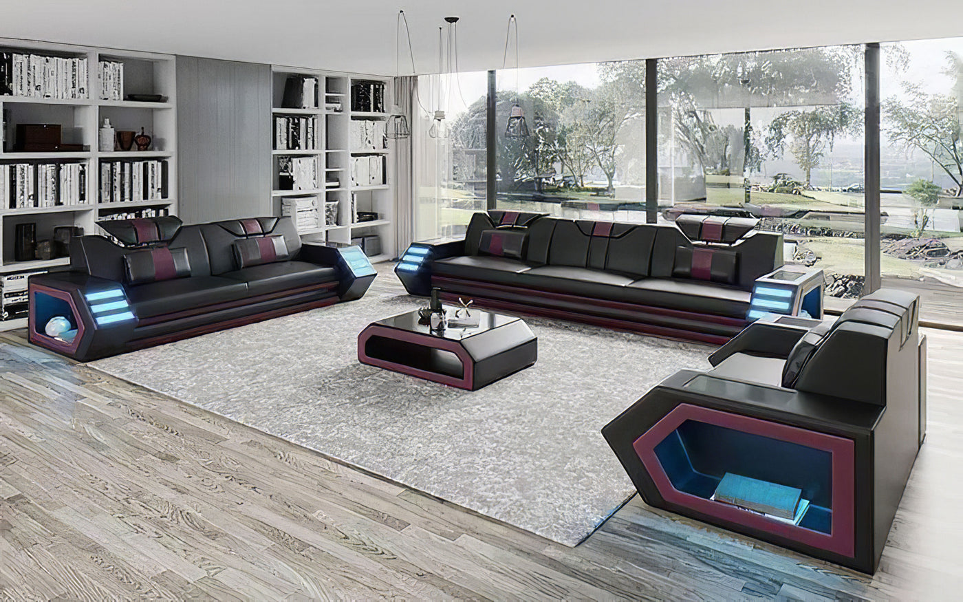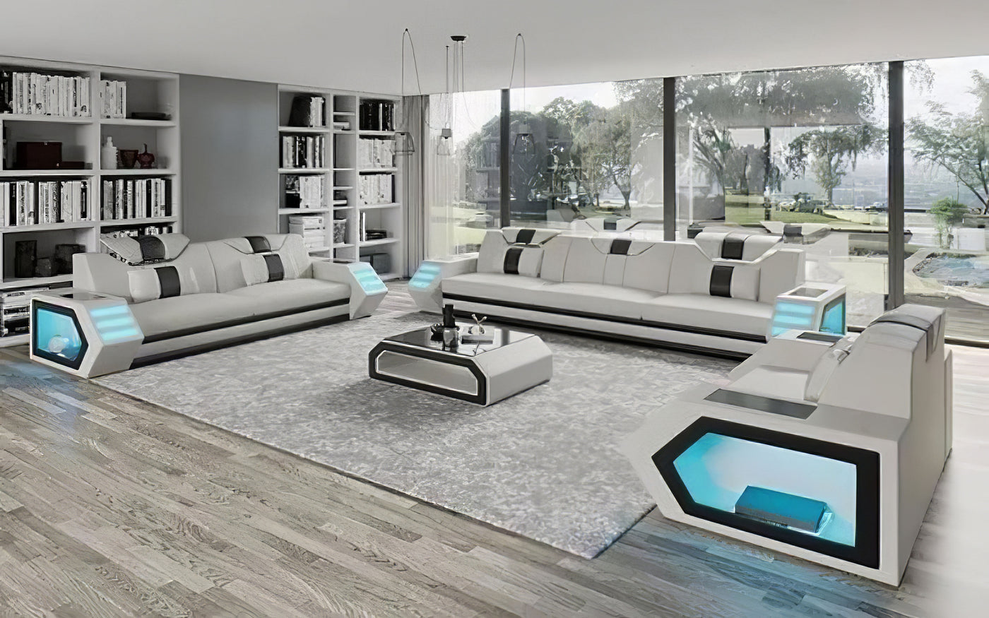 Do you need a futuristic sofa set that is stylish and innovative? Look no further! Every piece of the sofa set includes built-in lights and side storage space. The sofa set is illuminated by a LED light. It can be optionally upgraded to multi-color lights that can be controlled by a wireless remote.. This modern sofa set is inviting and stylish, instantly making it a conversation piece. To complete the look of your living space we recommend adding the matching coffee table. With the generous size of this set, family and friends will gladly socialize in comfort.