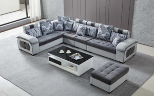 Selena Modular Tufted Sectional StyleB(Grey & Light Grey)
