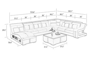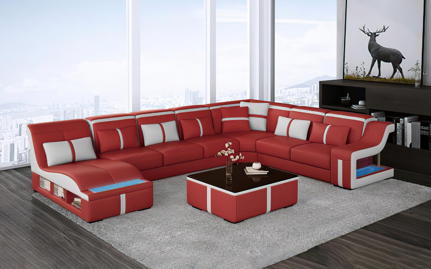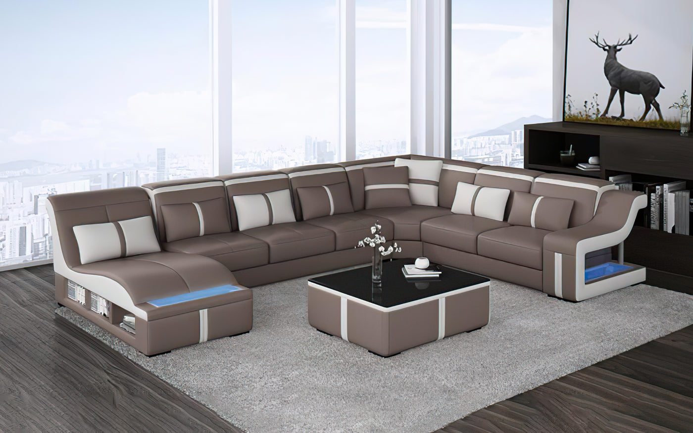 Bring sophistication to your living room with the stylish Lisa Modern Leather Sectional. With ample storage space and the option to add USB ports, cup holders, multi-color LED lights, and even upgrade it with a bed function, this sectional has everything you need to create a comfortable and functional living space. Choose from a range of color options, including custom requests, to ensure that the Navasota Leather Sectional with Shape Chaise fits seamlessly into your existing decor. Whether you prefer bonded leather or top grain leather, we have the perfect material to suit your unique style and needs.Enjoy the perfect balance of comfort and style.